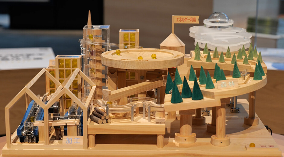 からくり模型「木材利用の循環と二酸化炭素の旅」
