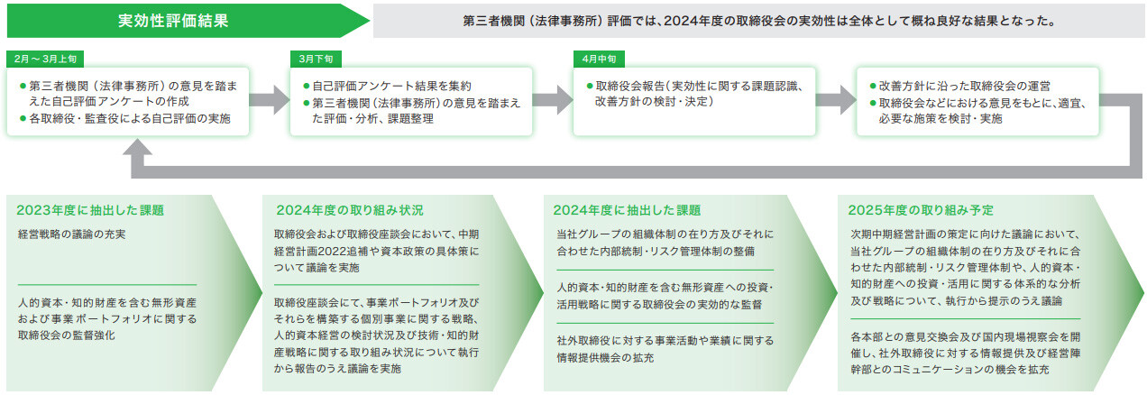 2024年度の実効性評価の結果、取締役会全体の実効性が確保されていることを確認しています。