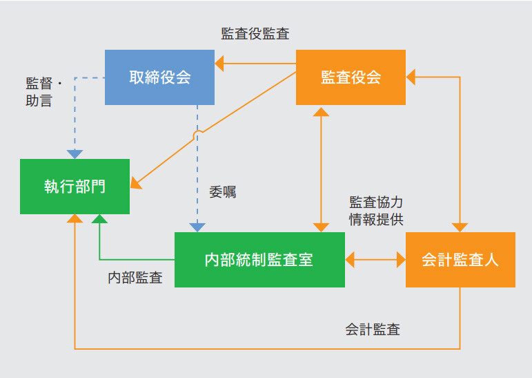 監査役、会計監査人、内部監査部門による監査(三様監査)