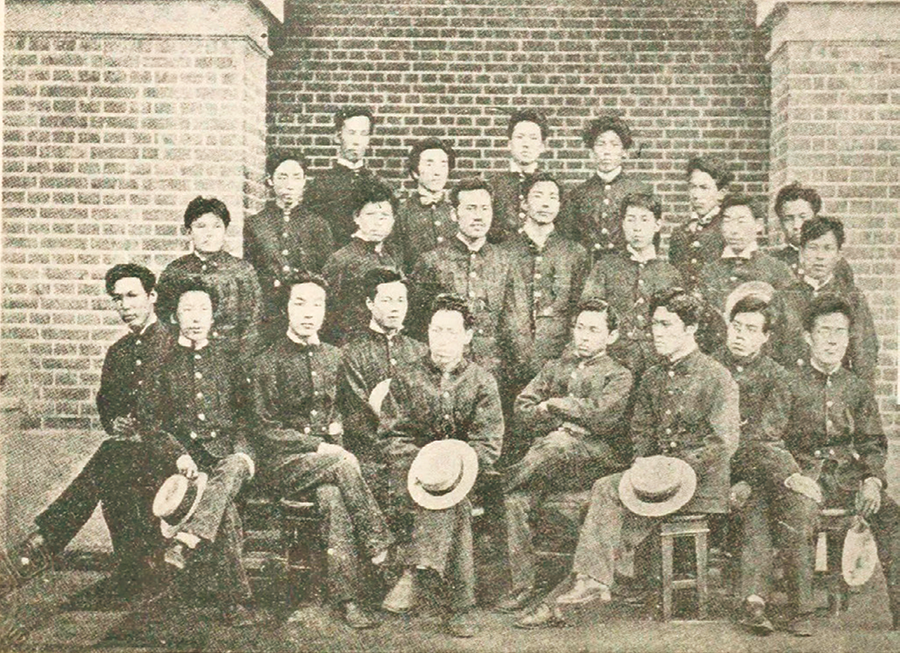 Of the four graduates in the last row, TATSUNO Kingo is on the far right, and SATACHI Shichijiro is second from the left. KATAYAMA Tokuma is fourth from the left in the second row (standing in front of Satachi), with one person separating him from SONE Tatsuzo.