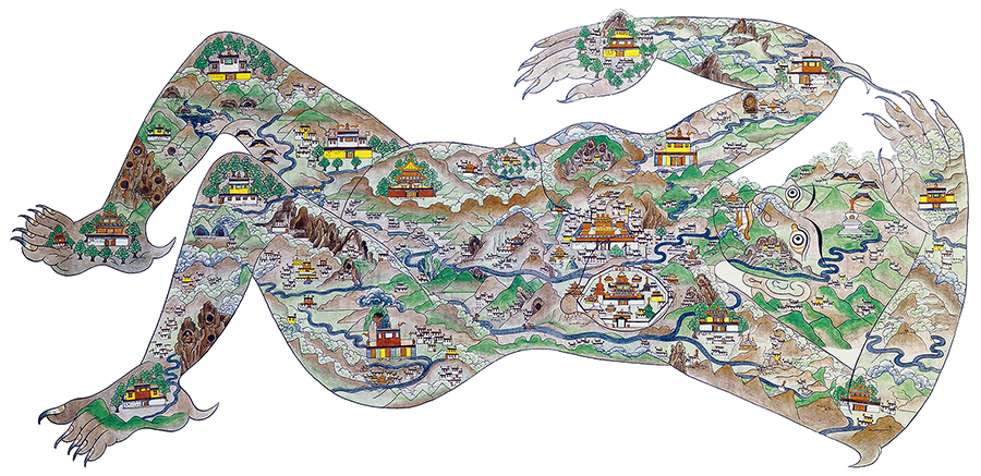 This map in the shape of a female demon represents the Tibetan worldview.