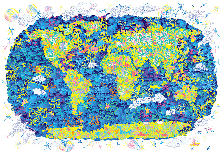 MATSUDA is a painter from Wakayama Prefecture. He has visited many places around the world and paints world heritage sites and spectacular landscapes as motifs with a unique method of expression, hoping to "create a spirit of peace that connects people through painting." For several years since 2011, he has made a painting of the earth every year, expressing in it the feelings and impressions he felt while traveling around the world.