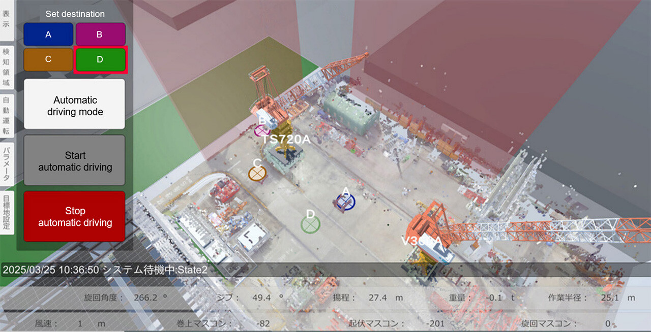 These digital twin environments are not only real-time visualizations in cyberspace of the areas around the tower cranes, but also implement instructions and decisions made in cyberspace in real time in the physical space. Technologies for various purposes are being developed in this demonstration field, including improving safety, reducing labor required, supplementing operator skills, and enhancing productivity in crane operations.