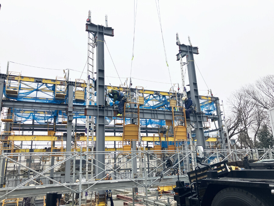 Regarding the steel structural components on the ground, we mainly reused used steel structural components and added new components to the insufficient parts. Construction was carried out using the same assembly procedures as for normal structural steelwork, and there were almost no restrictions due to the used components.