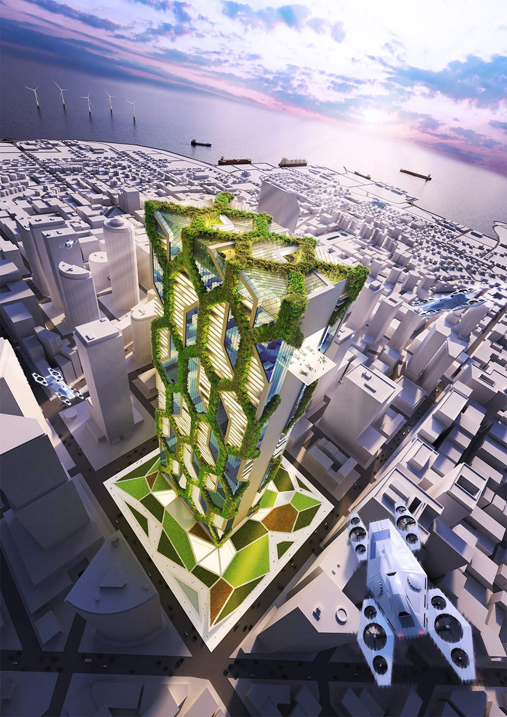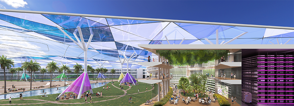 This concept visualizes what agriculture may be like in the future, once the technology sufficiently develops. Namely, in this vision, agriculture will supply people with an appropriate amount of food to sustain their lives, no matter the climate conditions in which it is practiced. There will be local production for local consumption. And all of this could happen without damaging the global environment.