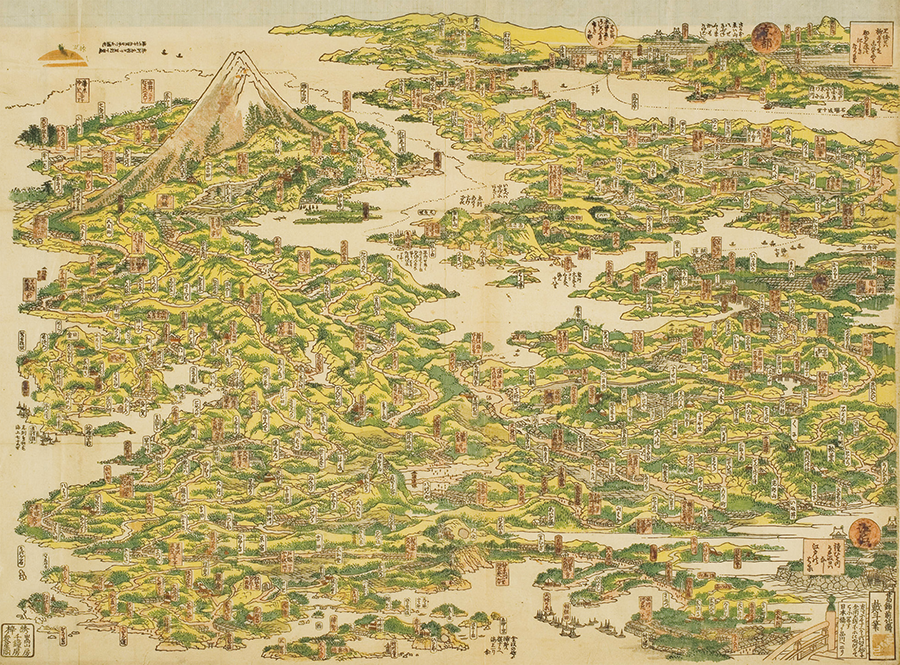 視覚からは、見るという行為を通して「分かった!」、あるいは「発見した!」というような一種の理由づけの感覚が得られる。この感覚は、記号が与える意味に加えて視線が動的に誘導され関係性を追う視覚パターンが形成されることにより生じる。北斎の「東海道名所一覧」、吉田初三郎の「東京大絵図」などは訴求力が大きい。それらは、あえてメトリックな縛りを外すことにより動的な視線誘導を促し、イメージを喚起させる構造となっている。