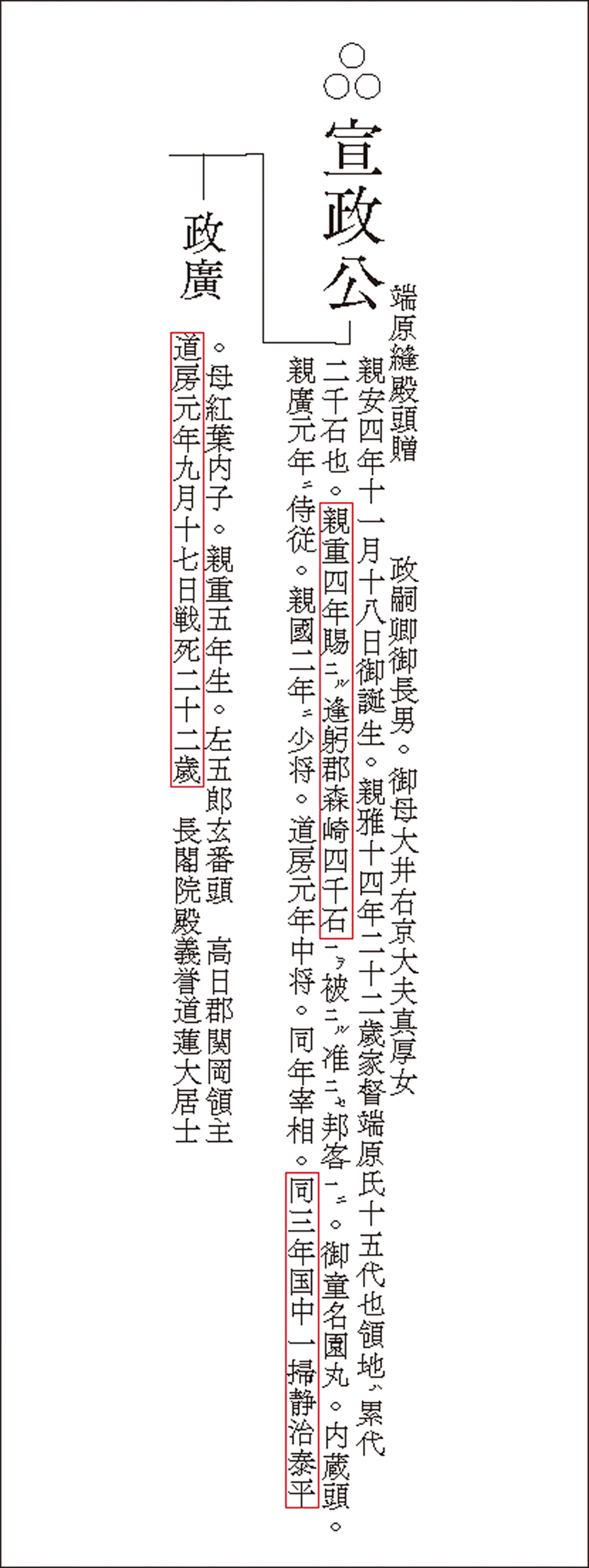 【端原宣政略年譜(端原氏系図より作成)】