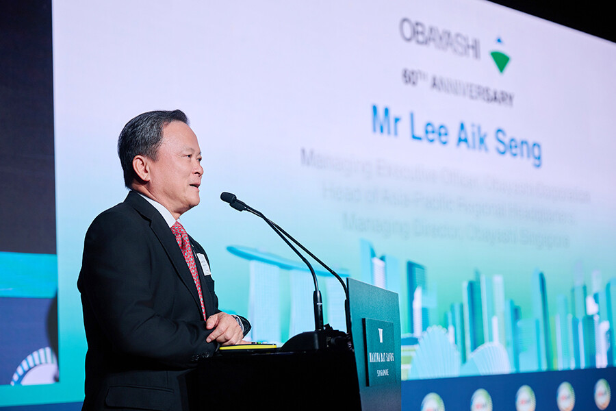 式典の始めに、大林組アジア支店長 兼 大林シンガポール社長のLee Aik Seng (リー・アイクセン)は、1965年にマレーシアから独立したシンガポールの成長とともに歩んできた大林組の現地での軌跡と、未来に向けた思いを語りました。