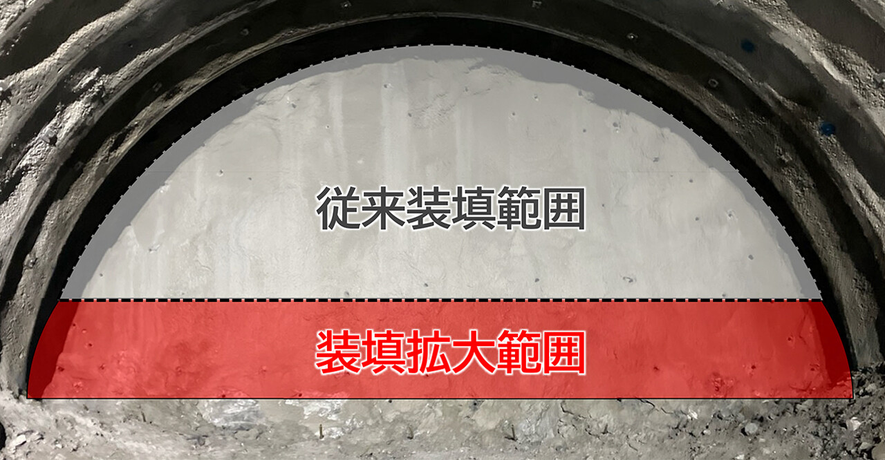 本システムと親ダイ供給装置の設置向きを調整可能にしたことで、装填できる範囲が拡大しました。これにより、これまで装填できなかった切羽の下方部分にも装填が可能になりました。