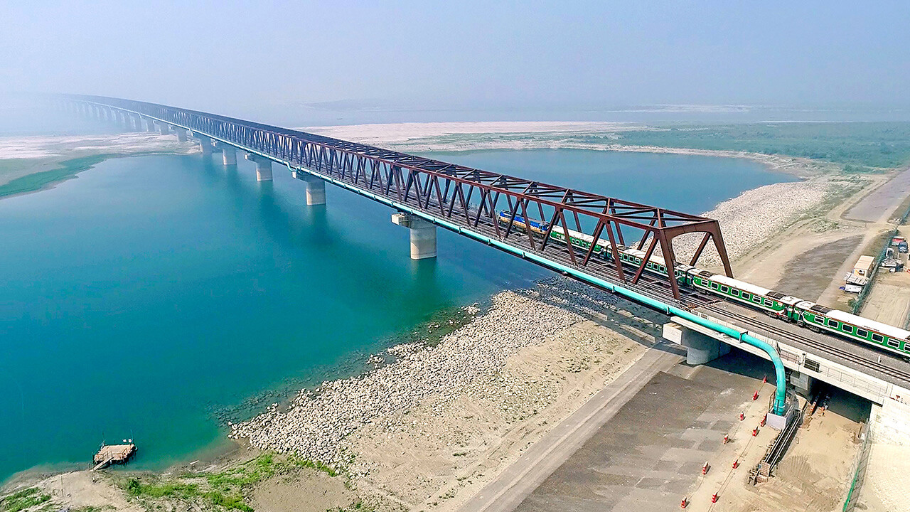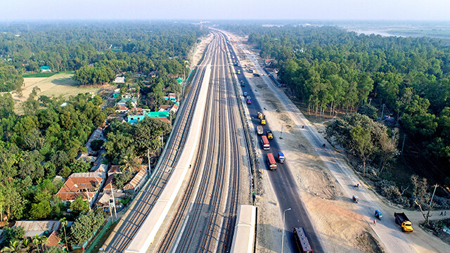 バングラデシュ国内最大級の河川・ジャムナ川に、既設の鉄道・道路併用橋と並行して鉄道専用橋と新線区間を整備し、都市間の物流効率化を図る国家プロジェクトです。大林組は、東西に2分割されたうちの東工区6.8kmを担当しました。