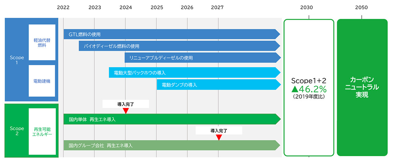 大林グループScope 1,2 CO2排出削減策のロードマップ