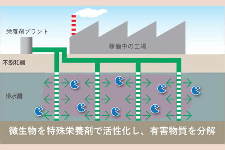 現場は常にダイナミックな重機が走り回っているけど、地盤に注入した栄養剤を微生物が食べて汚染物質を分解し、計画通りきれいにしてくれるかどうか、現場のミクロの世界を見守る日々。