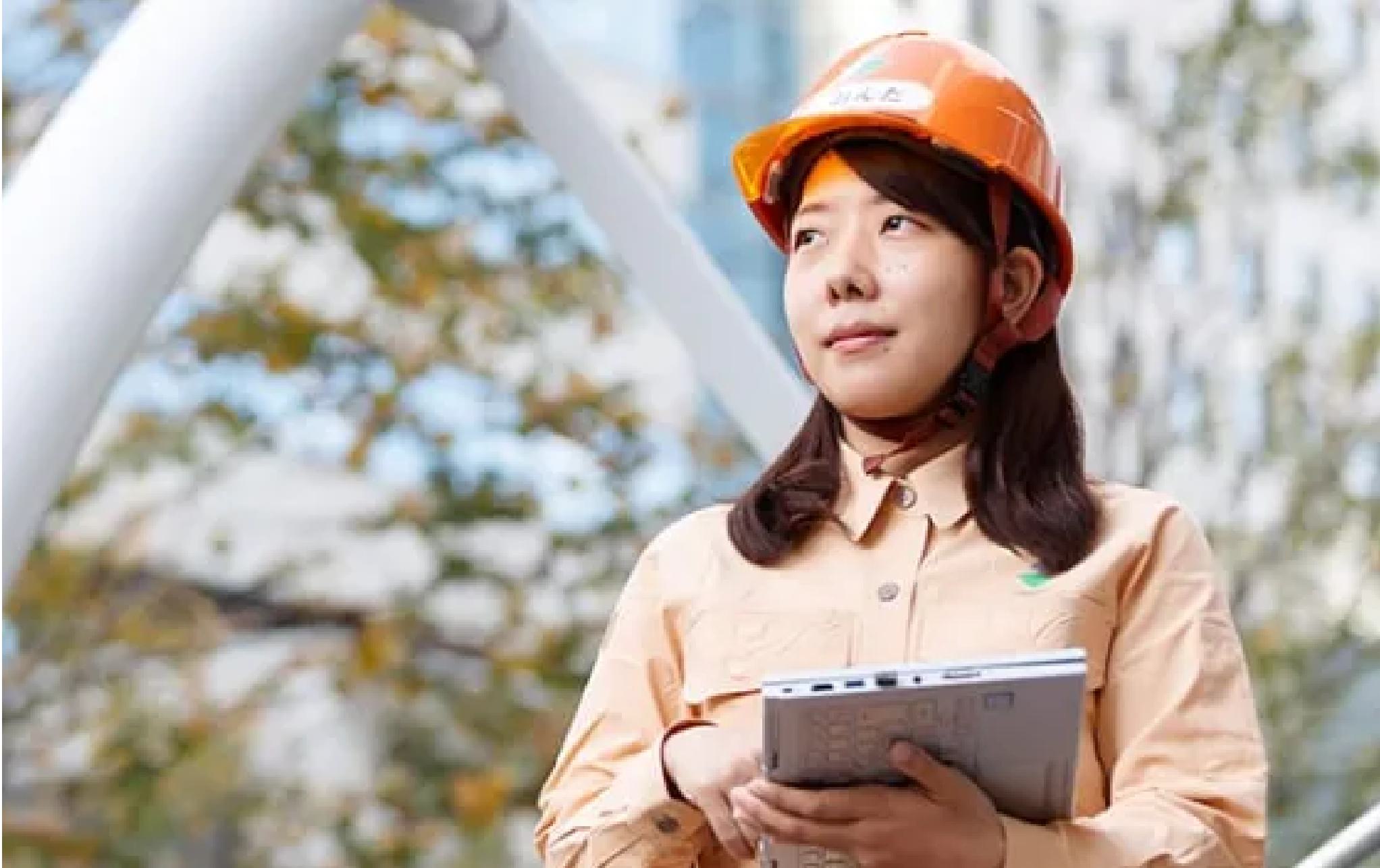 建設プロジェクトをリードする「営業」、不動産の賃貸・運用などに携わる「開発」、資機材の調達などを行う「生産支援」、施工現場の労務管理や会計業務などを担う「現場事務」、経営資源を運営する「管理」。ここでは、会社と現場の間に立ち、時にリードし、時にフォローに回りながら組織をまとめる事務の仕事をご紹介します。