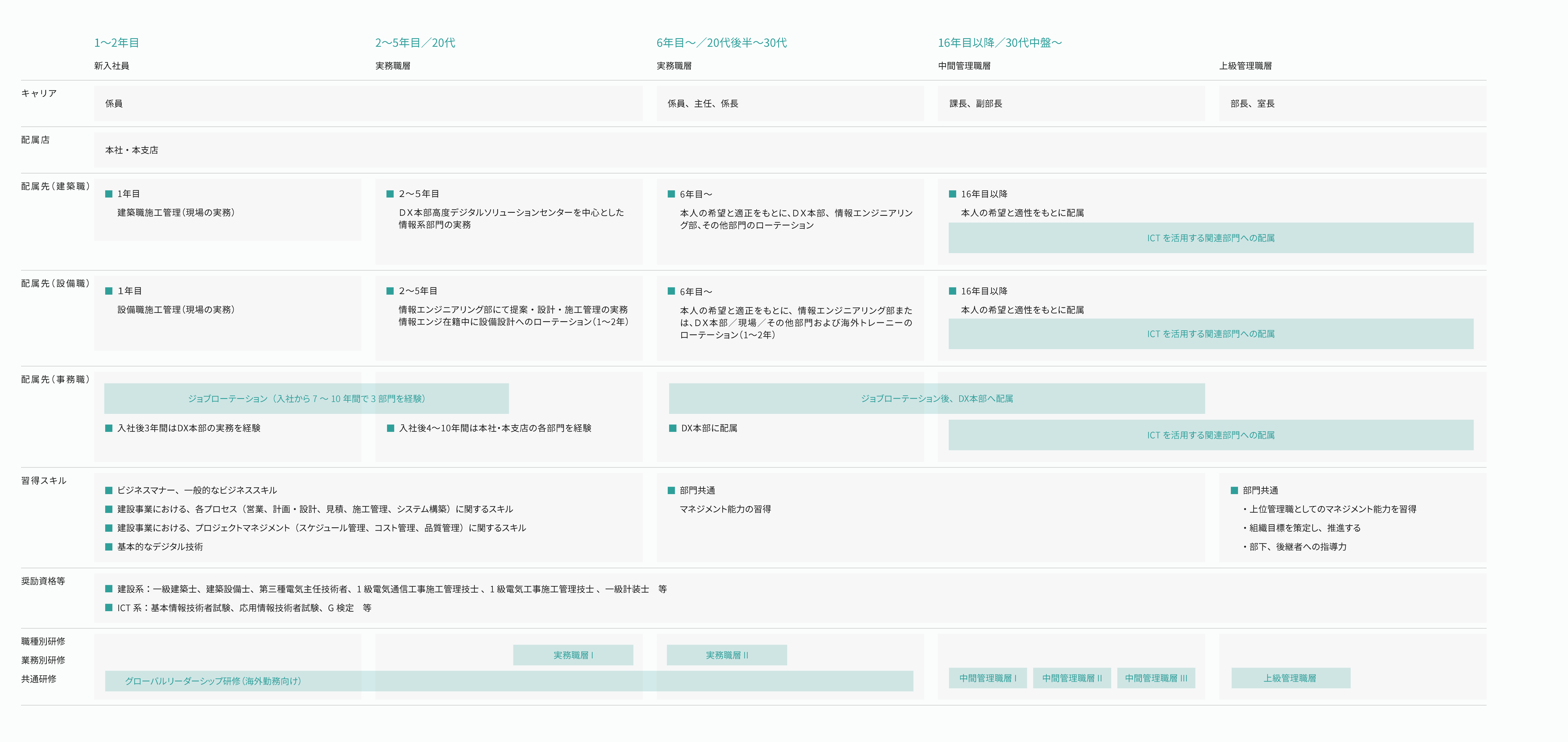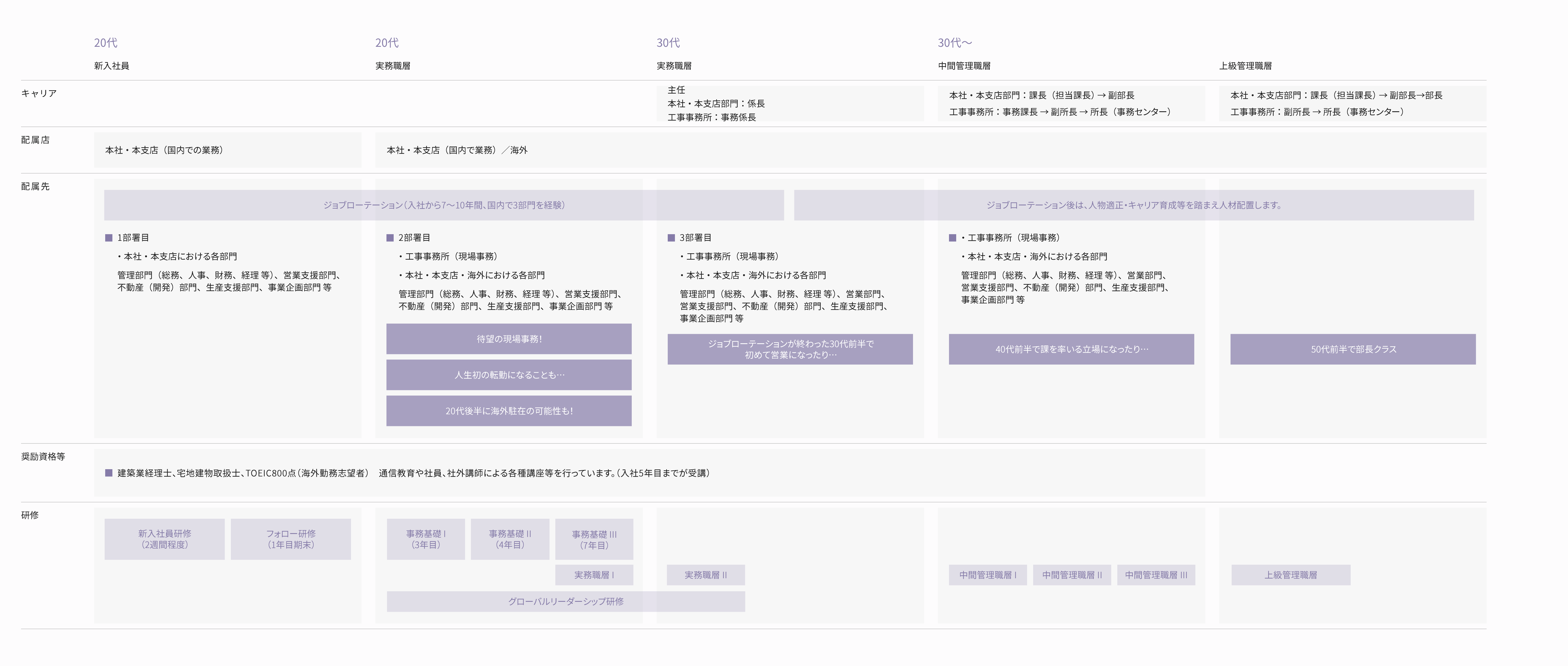 「全国型職員」「拠点型職員」、いずれにおいても大林組における基幹業務を担当することに変わりはありません。