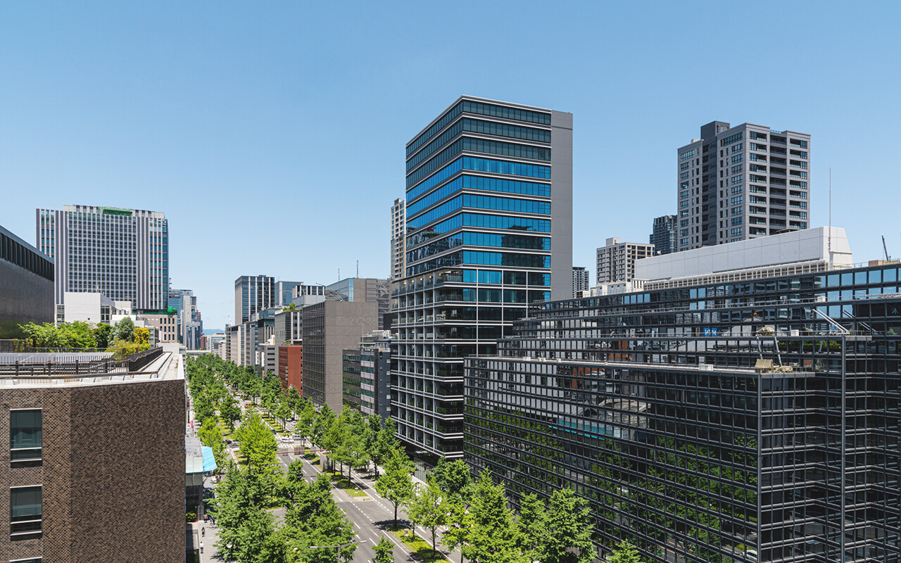 大阪・御堂筋に重ねる、緑と光が織りなすオフィスビル